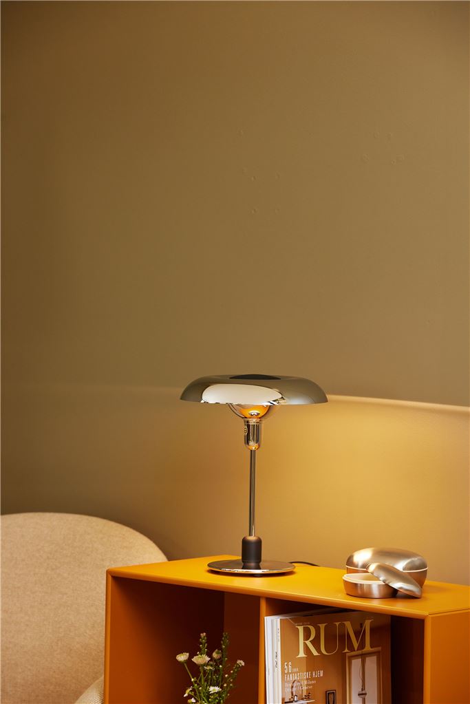 Den stilrene RA250 bordlampe præsenteres nu i en eksklusiv, blank kromfinish, som fremhæver det ikoniske og tidløse design. Serien er stærkt begrænset til blot 120 numrerede eksemplarer, hvor hver lampe bærer sin egen indgravering – en ære til både det fine håndværk og Piet Heins arv.