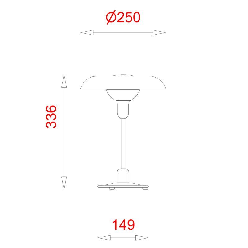 Den smukke RA lampe blev designet af Piet Hein i 1931. Lampens konstruktion af skærmene fordeler lyset uden at blænde. Piet Hein er kendt for at benytte sig af lange matematiske formler i hans designs, og RA lampen er bestemt ingen undtagelse. RA 250 har to sorte skærme samt et krom stel. Lampen har en sort ledning på 2 meter med afbryder og måler 33,6 cm i højden. Lampen er en stilfuld klassiker der bestemt vil pynte i hjemmet på reolen, i entréen eller på hjørnebordet i stuen. Pære ikke inkluderet.