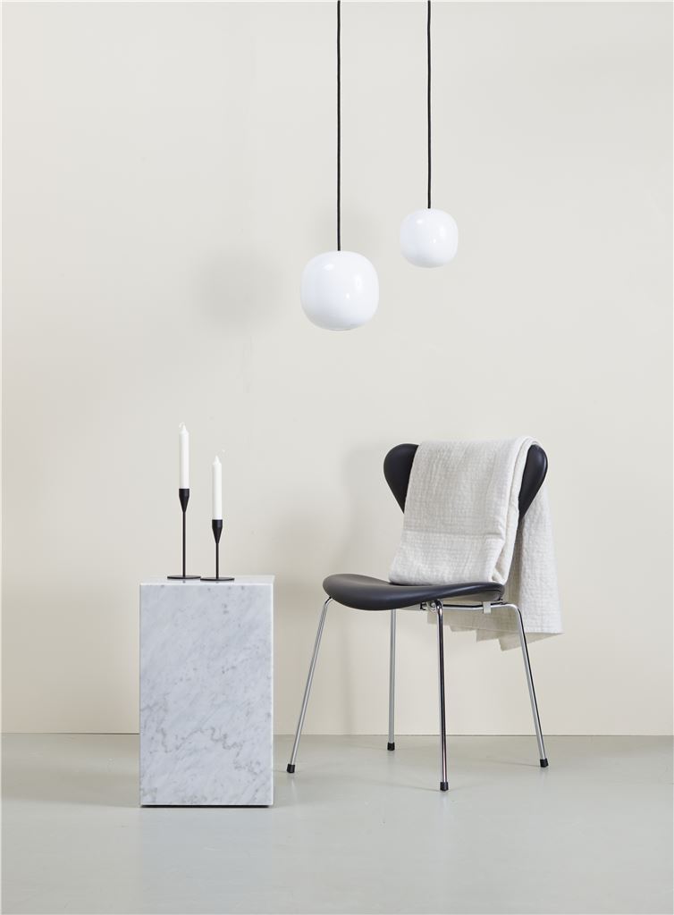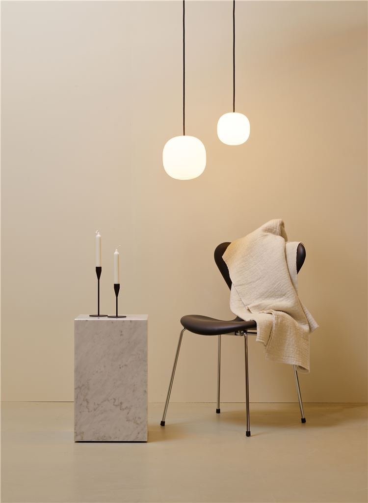 Lampens bløde lys gør den ideel i stort set hele hjemmet. Hæng den i køkkenet, i gangen eller måske i hjørnet i stuen. Pendlen har en diameter på 15 cm, og en 3 meter sort tekstilledning.