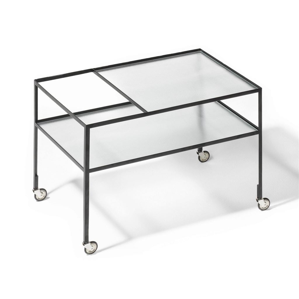 Minimalistisk og stilfuld barvogn fra Please Wait To Be Seated designet af Herbert Hirche i 1956. Barvognens kontrast mellem det tynde stål og det riflede glas giver den perfekte barvogn med et utroligt smukt design. Barvognen er helt perfekt til opbevaring af din yndlings gin, whiskey eller hvad end du foretrækker. Placer den fine barvogn i stuen, køkkenet eller spisestuen og lad barvognen være både et smukt og praktisk opbevaringssted.