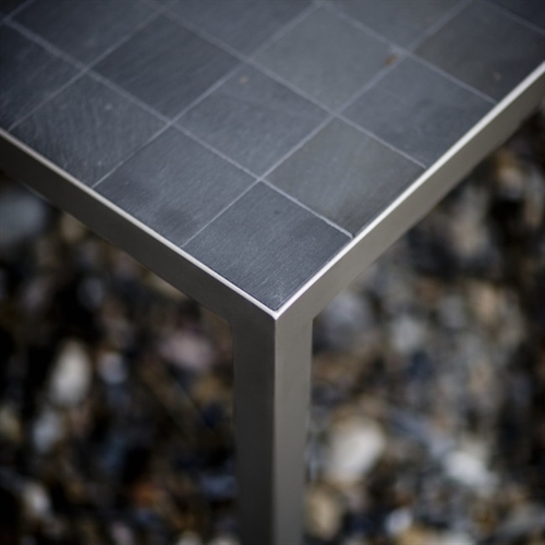 Skifferen er nem at vedligeholde med en fugtig klud med almindeligt opvaskemiddel. Bruger man skarpe genstande på bordet, kan der opstå ridser - disse kan fint fjernes med vandslibepair og derefter tørres over med en fugtig klud.