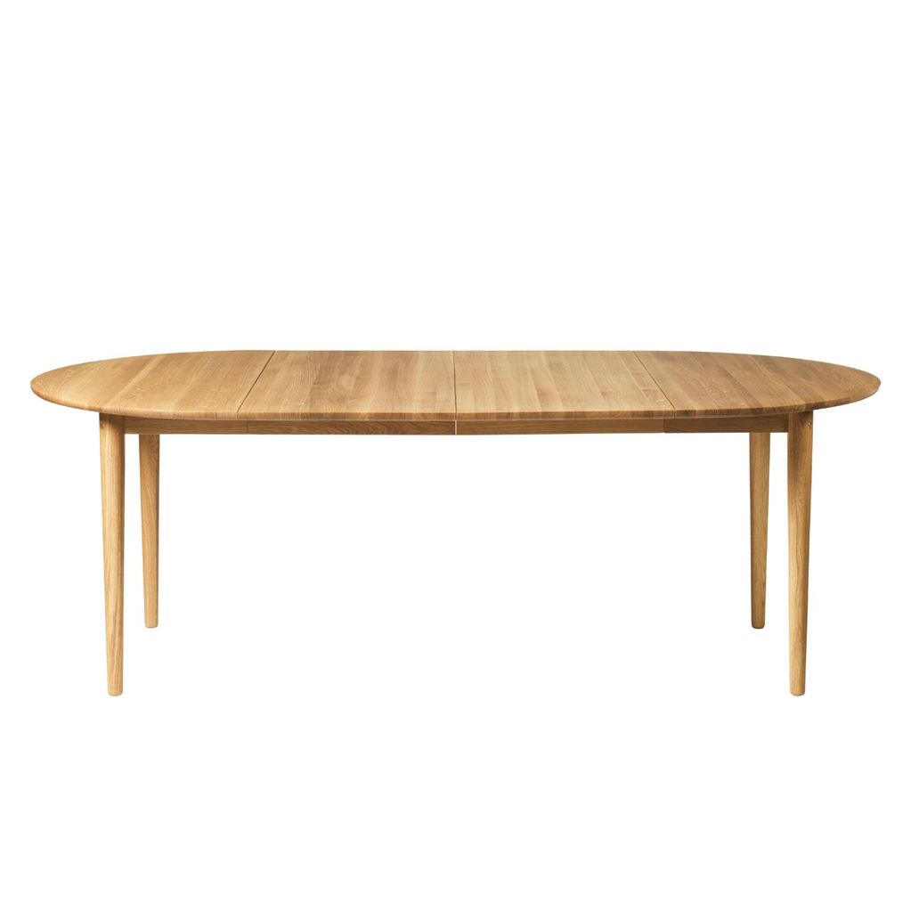 Bjørk-seriens spisebord kombinerer tradition og fornyelse på harmonisk vis, i tråd med FDB Møblers historiske designarv. Bordet er alsidigt og egner sig både til rummelige spisestuer og kompakte bykøkkener. Med en praktisk indlægsplade kan begge størrelser nemt udvides, så der bliver plads til fire ekstra gæster. Bordets bløde, afrundede form og egetræets varme udtryk giver det et moderne og særpræget look, der samtidig trækker tråde til klassiske spisebordsdesign fra FDB Møblers tidligere kollektioner. Fremstillet af massiv FSC®-certificeret egetræ, fremhæver bordet træets naturlige karakter med små knaster og unikke strukturer.