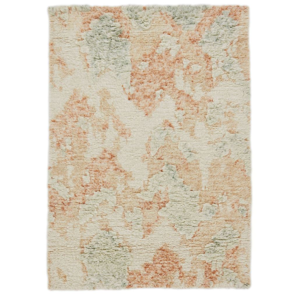 Dette smukke tæppe er håndknyttet i Indien af ren, førsteklasses uld. Det har et blødt, nærmest skyagtigt design, der tilfører ethvert rum en indbydende atmosfære. Den fine kombination af lyse, smukke farver – fra sølvrosa til gylden oliven og varm rust – skaber en harmonisk og tidløs palet. Et perfekt valg, hvis du ønsker at bringe varme og tekstur ind i hjemmet.