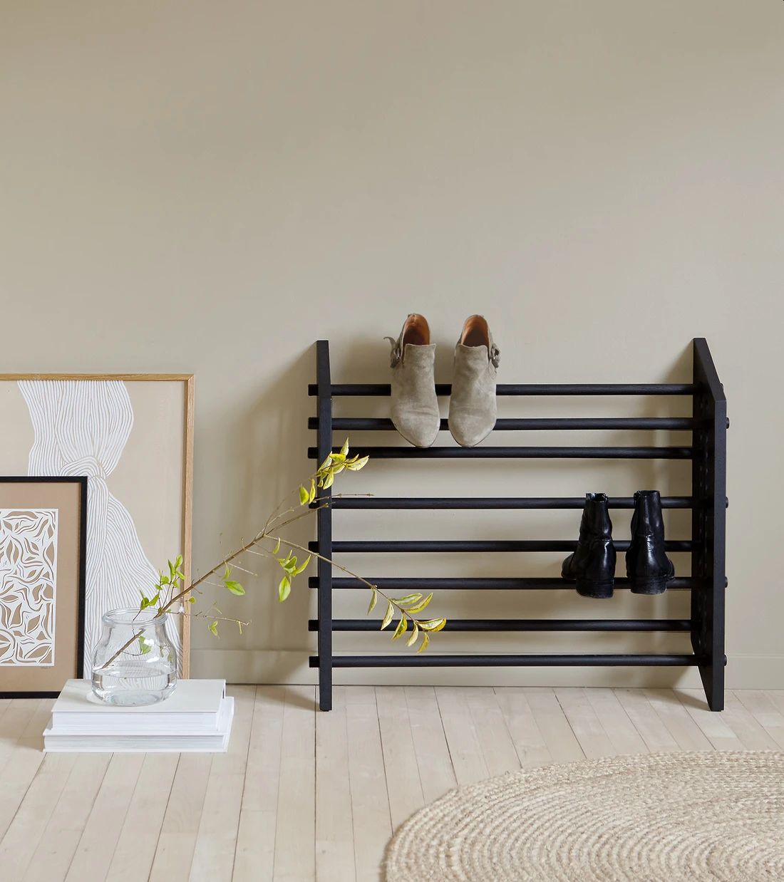 Smukt og funktionelt skostativ fra We Do Wood Roon & Rahn kollektionen. Skostativet - Moodstand - har justerbare tvær stænger, som gør det let at opbevare og udstille alle typer sko. Moodstand er skabt til en dynamisk hverdag, hvor behovene er i konstant forandring og funktionaliteten dagligt bliver udfordret.