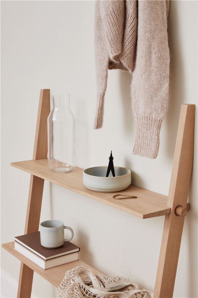 Elegant og funktionelt konsolbord fra We Do Wood Roon & Rahn kollektionen. Repó er en sammensætning af et konsolbord og en stigereol og perfekt til dig der gerne vil have flot design kombineret med funktionalitet. Konsolbordet har et rent og enkelt design så du kan få opbevaret alle de ting, du har behov for at ligge fra dig i entréen. Du kan skabe et individuelt look ved brug af bokse, skåle og accessoires i konsolbordet. Repó kan både stå på gulvet eller lænes op ad væggen - og så kræver det ingen huller for at konsolbordet står stabilt og solidt. Accessories på billederne medfølger ikke.