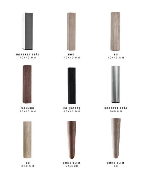 Sofaen findes med forskellige ben og i forskellige farver. Ønsker du at bestille en af disse,