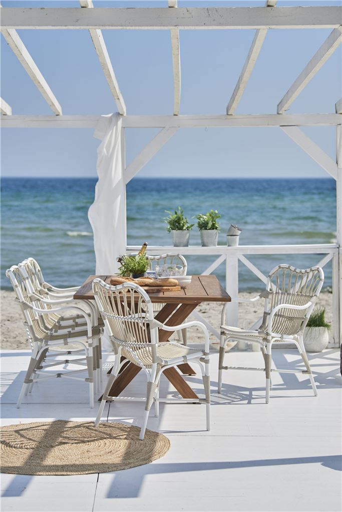 Den smukke spisebordsstol Margret har et let og elegant udtryk og cafébordet Nicole er inspireret af det charmerende Paris. Margret stolen kan med fordel stå udendørs hele året rundt, takket være dets vejrbestandige materiale. Colonial bordet er fremstillet af træ fra fiskerbåde og huse, hvilket skaber et rustikt udtryk. Med dette bord får du et unikt møbel som passer til de fleste omgivelser. Bordets varme teaktræ vil skabe en fin kombination med hjemmet og havens øvrige indretning.