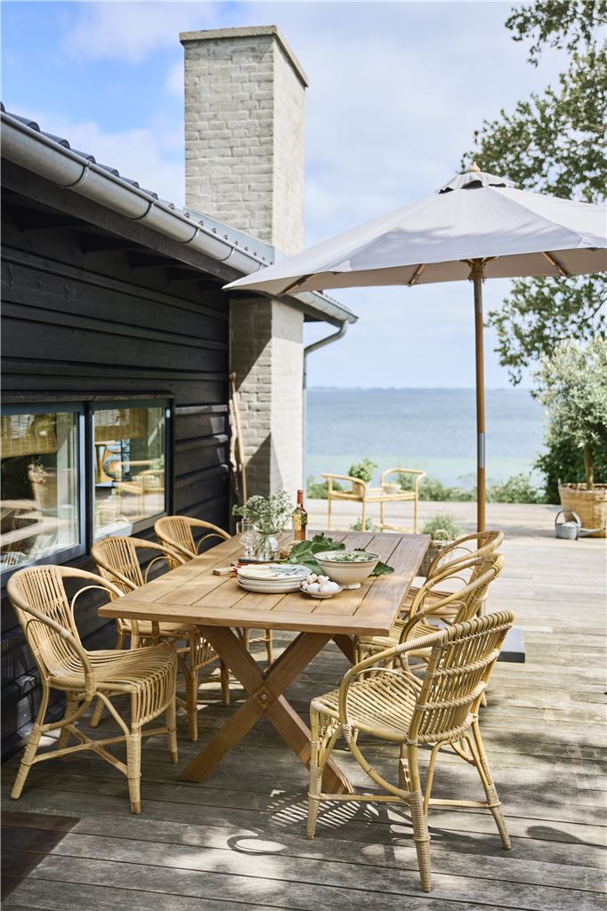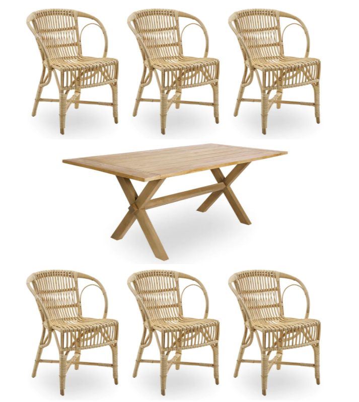 Colonial havebordet fra Sika-Design er fremstillet af gammelt træ fra fiskerbåde og huse, hvilket skaber et rustikt udtryk, med omtanke for både genanvendelighed og design. Bordet er et unikt møbel som passer til de fleste omgivelser, og det varme teaktræ vil skabe en fin kombination med den øvrige indretning. Bordet kræver minimal vedligeholdelse. Træet vil dog med tiden få en sølvgrå farve, hvis ikke det olieres med teaktræsolie. Hvis du ønsker at bevare træets varme og intense farve, anbefales der at det olieres 1-2 gange årligt. Husk at du kan forlænge dine møblers levetid ved at opbevare dem tørt i vinterperioden. Robert havestolen er en klassisk havestol, designer af Robert W. Den er fremstillet af organisk materiale og har et blødt formsprog der stemmer overens med nutidens tendenser. Stolen har smukke detaljer og kan både bruges inden- og udendørs. Vi gør opmærksom på, at stolen altid skal stå et tørt sted og derfor anbefales det, at du bruger stolen under din overdækkede terrasse, udestue eller spisestue.