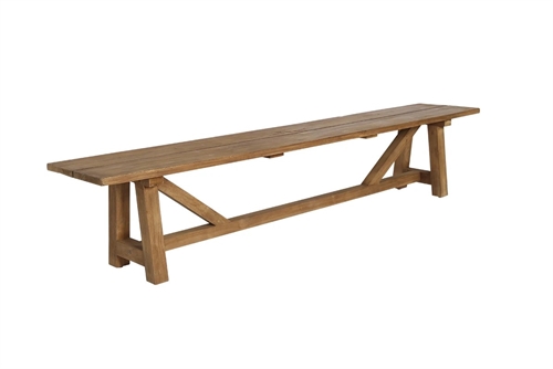 Da bænken er fremstillet i teak kræver det minimal vedligeholdelse. Træet vil dog med tiden få en sølvgrå farve, hvis ikke det olieres med teaktræsolie. Hvis du ønsker at bevare træets varme og intense farve, anbefales der at det olieres 1-2 gange årligt. Husk at du kan forlænge dine møblers levetid ved at opbevare dem tørt i vinterperioden.