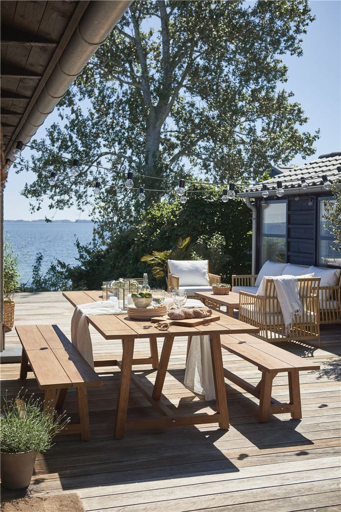 Den unikke George serie er fremstillet af gammelt træ fra fiskerbåde og huse, hvilket skaber et rustikt udtryk - her har der været tænkt på genanvendelighed og design. Seriens varme teaktræ vil skabe en fin kombination med hjemmet og havens øvrige indretning. Denne serie er klassisk, tidløst og moderne, hvilket afspejler sig i dens form og design. Du kan for eksempel bruge serien til at skabe et hyggeligt område på terrassen eller i haven og pynte det med puder, tæpper og måske endda lanterner i forskellige former.
