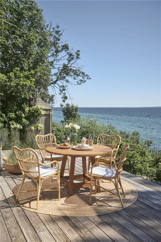 Dette havemøbelsæt fra Sika-Design består af de smukke Margret spisebordsstole, med et let og elegant udtryk samt George spisebordet. Stolene er solide og da de er fremstillet i et vejrbestandigt materiale, kan de stå udenfor året rundt. Det runde havebord er fremstillet af gammelt teaktræ fra fiskerbåde og huse og designet udstråler genanvendelighed. Havebordet er tidløs og klassisk og vil kunne passe ind i indretningen i mange år. Fordelen ved teaktræ er, at det kræver minimal vedligeholdelse - dog vil træet med tiden få en sølvgrå farve, hvis ikke de olieres med teaktræsolie.