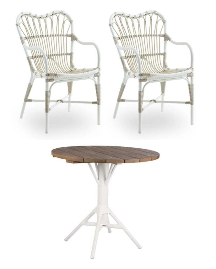 Den smukke spisebordsstol Margret har et let og elegant udtryk og cafébordet Nicole er inspireret af det charmerende Paris. Margret stolen kan med fordel stå udendørs hele året rundt, takket være dets vejrbestandige materiale. Nicole cafébordet giver mulighed for at få Paris' hyggelige stemning i haven eller terrassen og det klassiske design samt den rustikke teakplade tilføjer noget unikt til din udendørsindretning. Bordet kræver minimal vedligeholdelse og kan ligeledes tåle at stå udendørs hele året rundt.