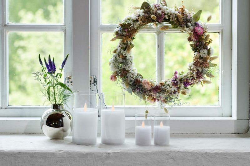 Smuk gaveæske med 2 stk. Sirius batteri Ivy lys med bevægelig LED lysflamme. Lysene er begge 9 cm høje og 5 cm i diameter. LED batterilysene er lavet af ægte stearin. Stearinlysene er batteridrevne og har indbygget timerfunktion, der kan indstilles til at være tændt i 8 timer, og slukket i 16 timer. Stearinlyset tåler maks. 30 grader. Batterier medfølger ikke. Der skal isættes 2 stk. CR2032 batterier i bunden af hvert kronelys.