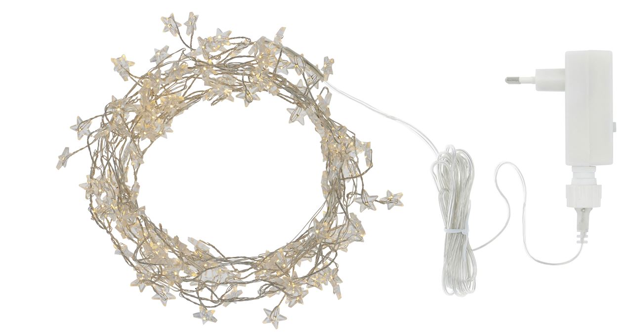 Sirius Lyskæden Trille Cluster består af små fine LED lys formet som stjerner. Kæden er lavet med en fin sølvtråd, der er snoet rundt om den transparente ledning, hvorpå de små fine stjerner er påsat. Leveres inkl. transformer og 3 meter ekstra ledning. Trille lyskæden har indbygget timerfunktion der slukker automatisk efter 6 timer, og tænder igen efter 18 timer. Sådan vil det fortsætte indtil du slukker på kontakten. Hvis du ønsker at kunne fjernbetjene lyset, kan der tilkøbes en Sirius fjernbetjening. Fjernbetjeningen sættes til enten "ON", "OFF", samt 2, 4, 6 eller 8 timers timer.