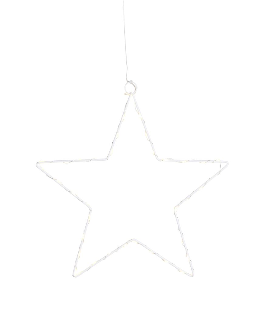 Stjernen er udstyret med en lyskæde med 80 LED lys, som giver et flot varmt og naturligt lys. Der medfølger transformer og 3 meter lang ledning, som sikrer en nem tilslutning. Timerfunktion er indbygget.
