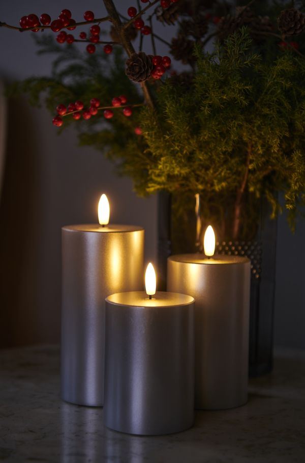 Sirius Sille Exclusive 3 stk Batteridrevet Stearinlys H: 10/12,5/15 cm - Sølv