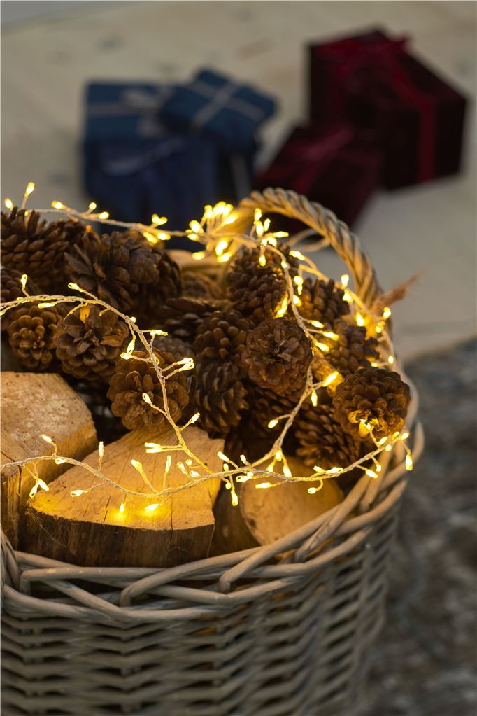 Sirius Lyskæden Knirke Cluster består af små fine LED lys. Kæden er lavet med en fin sølvtråd, der er snoet rundt om den transparente ledning, hvorpå de små fine lys er påsat. Leveres inkl. transformer og 3 meter ekstra ledning.