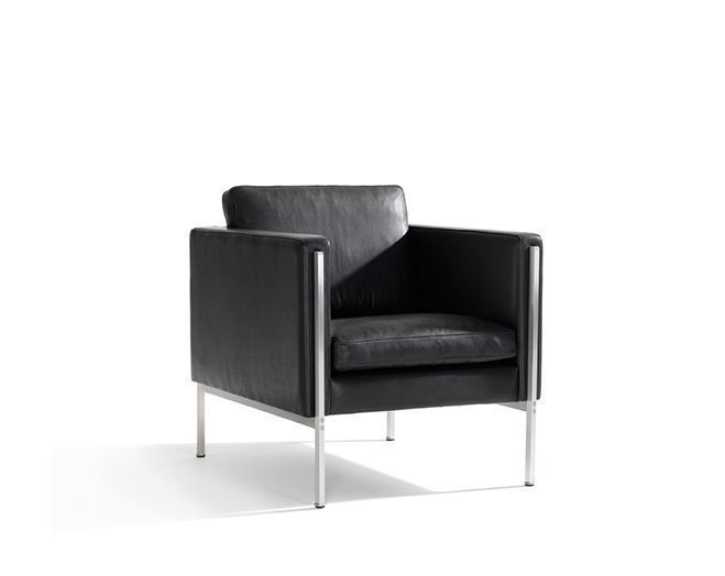 OBS. Dette er en Capri lænestol med armlæn A i egetræ. Produktbilledet viser Capri lænestolen med armlæn B i stål, se billeder for nærmere info.