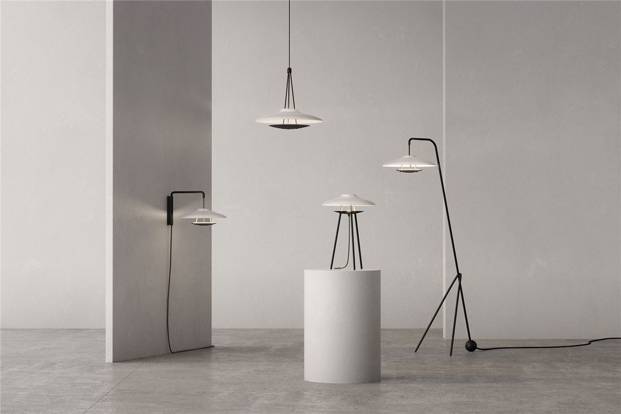 Industriel og enkel lampe fra Stellar Works. Trods lampens industrielle design har den dog stadig et klassisk udtryk der gør, at den vil passe ind i de fleste hjem. Dens tynde silhuet gør at lampen ikke fylder for meget i rummet og dog alligevel stjæler opmærksomheden, med dens næsten svævende skærm. Lampens to skærme gør, at lampen udsender et omgivende lag af lys. Lampen vil være ideel på kontoret eller som ekstra belysning i stuen. Lampens navn Haro er det japanske ord for Halo.