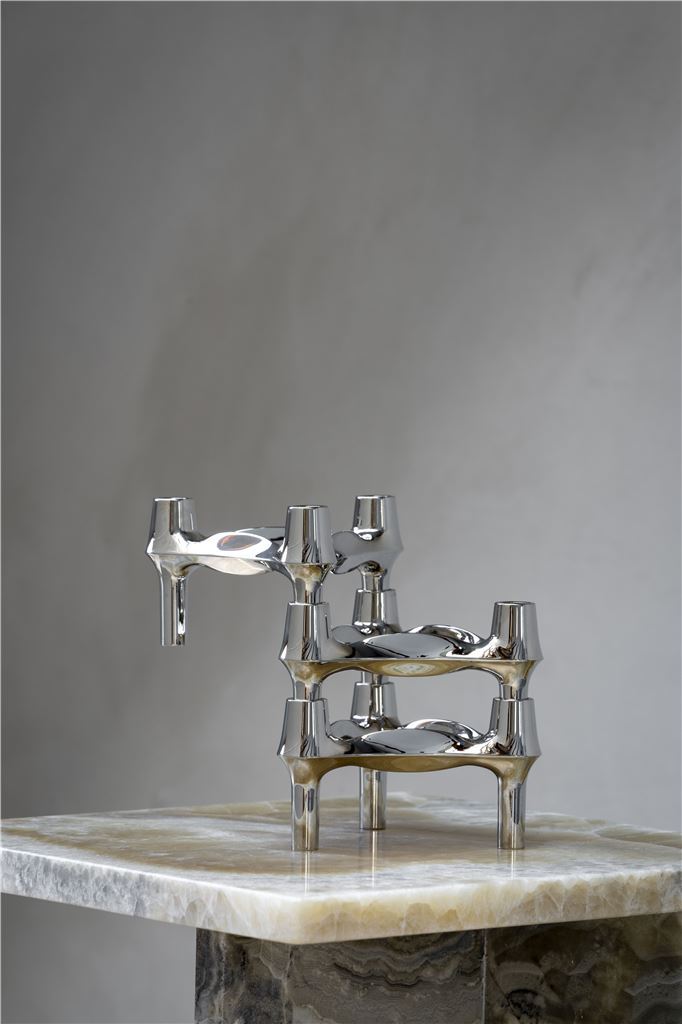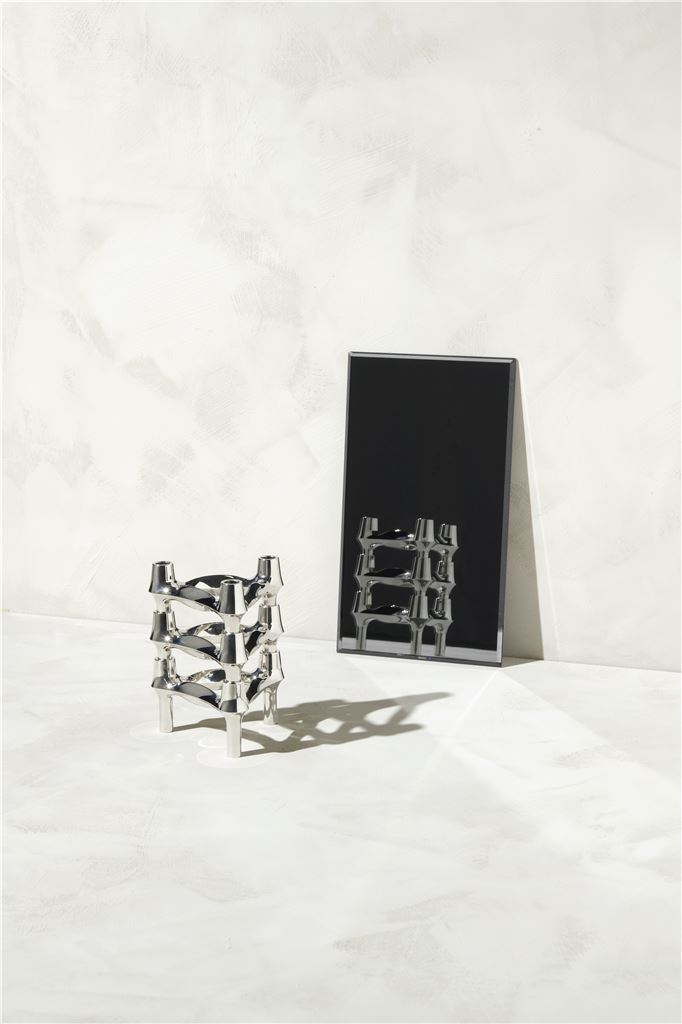 En iøjnefaldende lysestage fra STOFF Nagel, en relancering af den ikoniske BMF lysestage. Lysestagen har en lang historie og blev oprindeligt designet af firmaet Nagel i slutningen af 1960'erne. Kort efter lanceringen blev lysestagen overdraget til firmaet BMF, som producerede den fra 1971-1985. Lysestagen er nu blevet en del af Stoff Nagel og genopliver nu den ikoniske design historie. Lysestagen er en smuk detalje til enhver indretning. Den ikoniske lysestage er som en formbar skulptur, der blot venter på at antage form fra dine kreative hænder. Du kan eksempelvis vælge at stable flere lysestager i forskellige højder. Kun fantasien sætter grænser for, hvordan lysestagen kan sammensættes til en unik lille skulptur i din indretning.