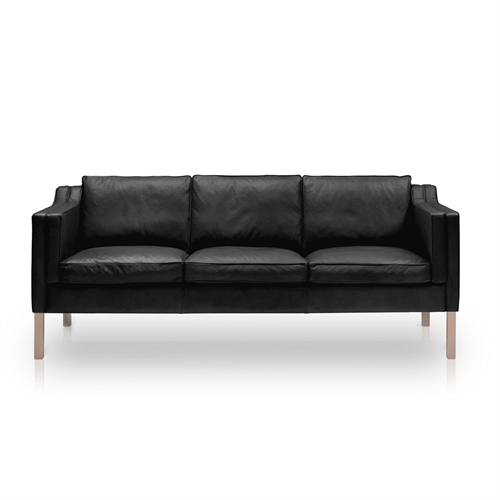 Stouby Eva 3 pers. sofa L: 200 cm - Sort Semianalin læder/Eg