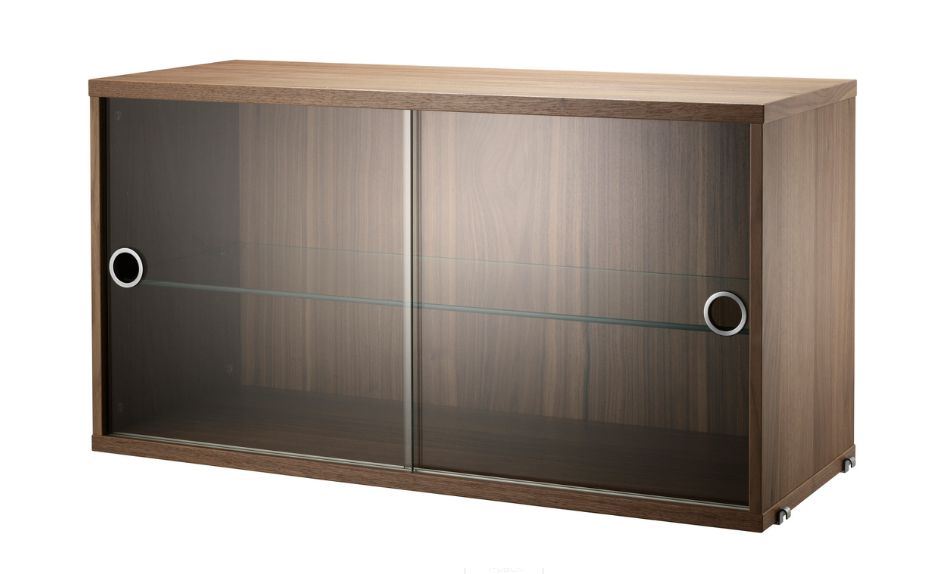 String Furniture Display Cabinet With Sliding Glass Doors B: 78 cm - Walnut
