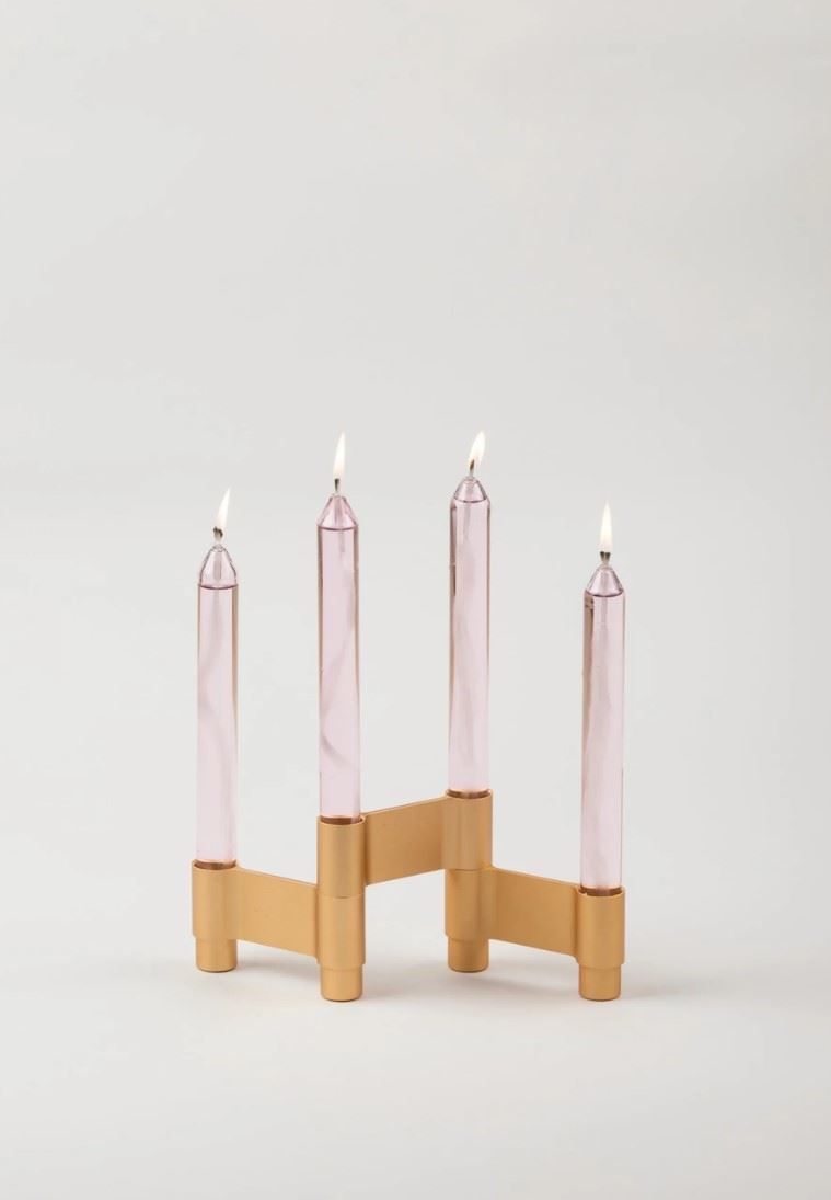 Link lysestagen fra Studio About er designet af Mikkel Lang Mikkelsen. Det er en moderne fortolkning af flerarmede kandelaber lysestager. Lysestagen findes i flere farver og er et enkelt men smukt element til din indretning. Der er mulighed for at ændre det visuelle udtryk da den består af individuelle moduler der kan stables, stå alene og kombineres med hinanden på mange interessante måder.
