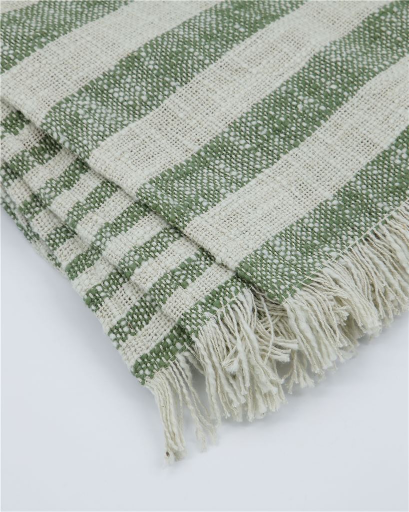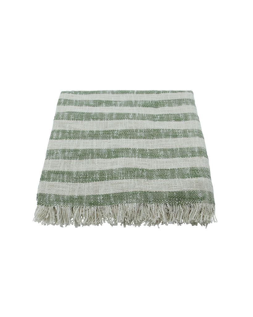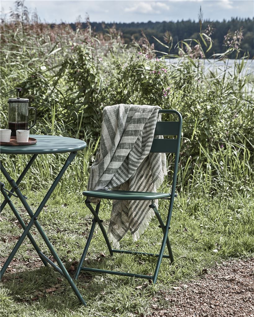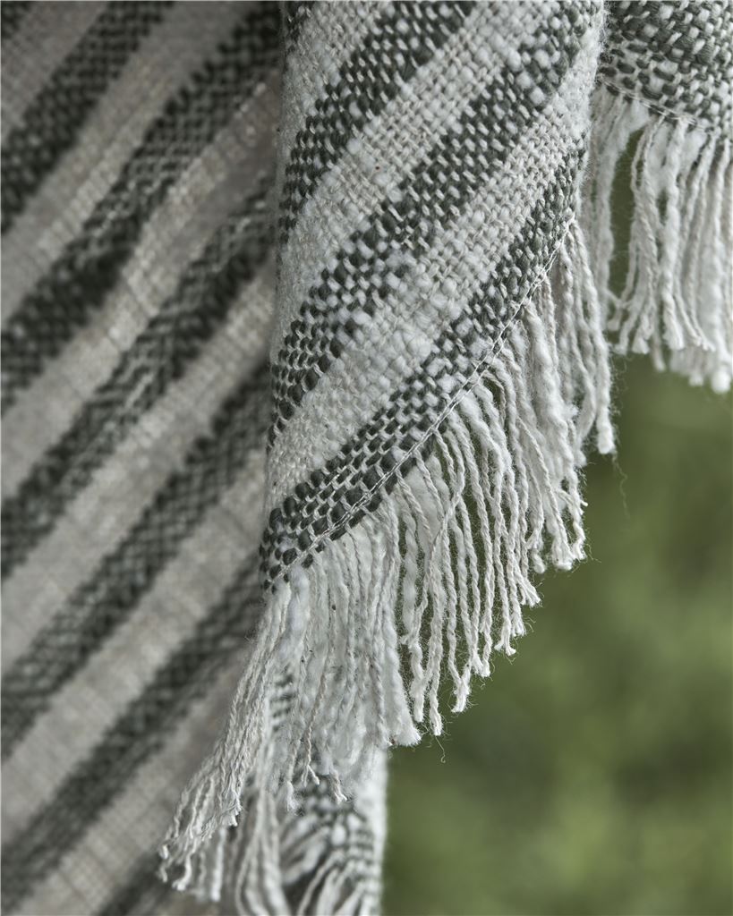 Forestil dig sofaen, en kop te og dette bomuldstæppe fra House Doctor. Striberne i det afslappede design bliver gradvist smallere, og de rolige farver samt frynserne passer perfekt til enhver indretningsstil. For at skabe harmoni i dit sofahjørne kan du kombinere tæppet med puder i lignende grønne nuancer og skabe en hyggelig stemning. Du kan også tage tæppet med dig, når du går ud for at nyde en kop kaffe i solen.