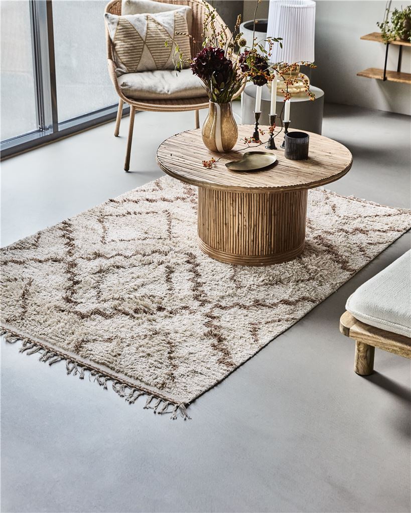 Tilføj personlighed til din indretning med dette store, bløde tæppe fra House Doctor. Tæppet er stilfuldt og forvandler ethvert rum med sit geometriske mønster og frynser. Den perfekte størrelse gør det ideelt til at skabe et område i din stue, for eksempel ved sofaen eller spisebordet. Tæppet beskytter gulvet, samtidig med at det tilføjer blødhed og fokus, hvilket skaber sammenhæng i rummet.