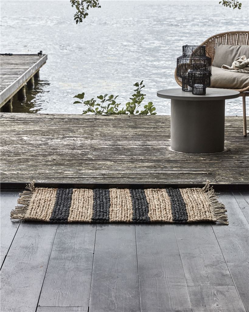 Dette lille tæppe fra House Doctor kombinerer funktionalitet med et stilfuldt design. Det er fremstillet af jute, et slidstærkt materiale ideelt til områder med høj aktivitet. De sorte striber tilføjer en elegant detalje til dit rum, samtidig med at det neutrale design gør det let at integrere i din indretning. Placer tæppet i entreen, soveværelset eller stuen for at skabe en afslappende atmosfære og tilføre tekstur til rummets overordnede udtryk.