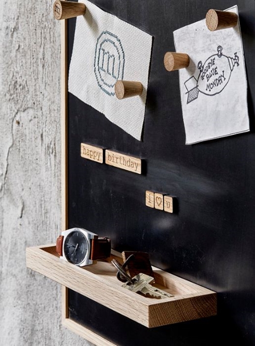 Brug bakken til at have f.eks. nøgler, tegnekridt eller andet nips i, som de gerne vil have i nærheden af opslagstavlen.
