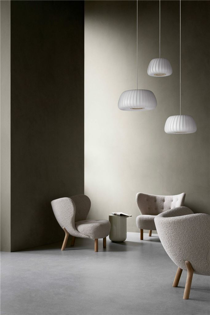 TR19 pendlen har et robust og elegant udseende. Den er fremstillet af belagt papir og udstråler et jævnt, funktionelt lys. Pendlen har en forholdsvis lukket skærm, hvilket gør at lampen med fordel kan placeres højt uden at blænde. Brug pendlen for eksempel over spisebordet, køkkenbordet, i entreen eller i et andet rum, hvor du ønsker en god belysning.