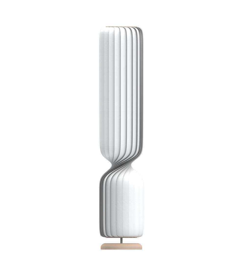 Smuk gulvlampe fra Tom Rossau. Denne skønne gulvlampe er en del af TR41 serien, som drager stærk inspiration fra Tom Rossaus populære lamper, TR7 og TR37. Dog tilbyder TR41 serien et helt nyt udtryk, da den velkendte cylinder er strammet op ved en forsnævring i toppen, bunden og midten, hvilket giver lampen en helt speciel timeglasfigur. Samtidigt har lampen en interessant asymmetri, da forsnævringen i midten er placeret i den nedre del af lampen. Lamperne i serien er lavet i et specielt materiale, som er kombineret af papir og plastik. Sammen skaber disse materialer en fin gennemsigtighed, høj kvalitet, og interessant struktur, hvilket giver en fuldendt, taktil oplevelse. Brug den skønne gulvlampe i stuen, værelset, entréen eller hvor den ellers passer ind. Uanset hvor lampen placeres, vil den tilføje en yndefuld og unik detalje til indretningen.