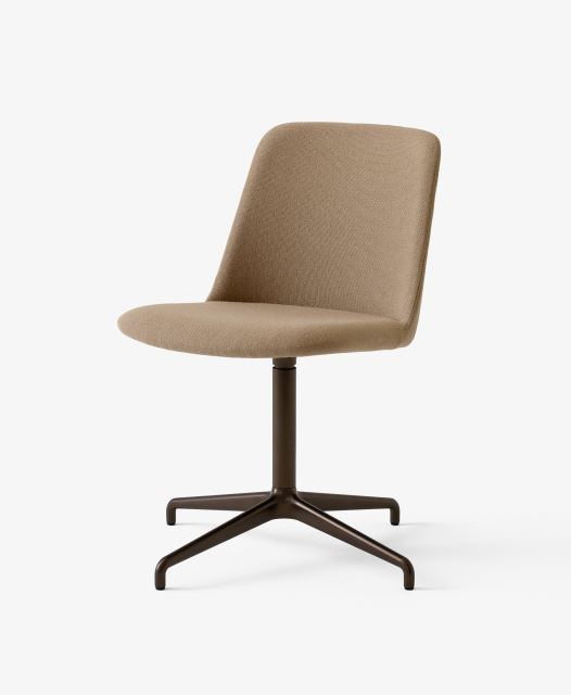 Skøn spisebordsstol fra &Tradition, designet af Hee Welling. Rely spisebordsstolens skal er fremstillet af 100% genanvendt plast med 15% glasfiber, og er en stol som er designet med omtanke for ansvarlighed. Stolens enkle udseende og ergonomiske design udstråler minimalisme og et praktisk udført design. Stolen er ideel som spisebordsstol, men kan med fordel også bruges på kontoret. Denne model har drejestel lavet af ekstruderet aluminium samt polstret sæde og ryglæn. Indret din spisestue eller kontor med enkle, stilrene stole, som passer ind i de fleste omgivelser.