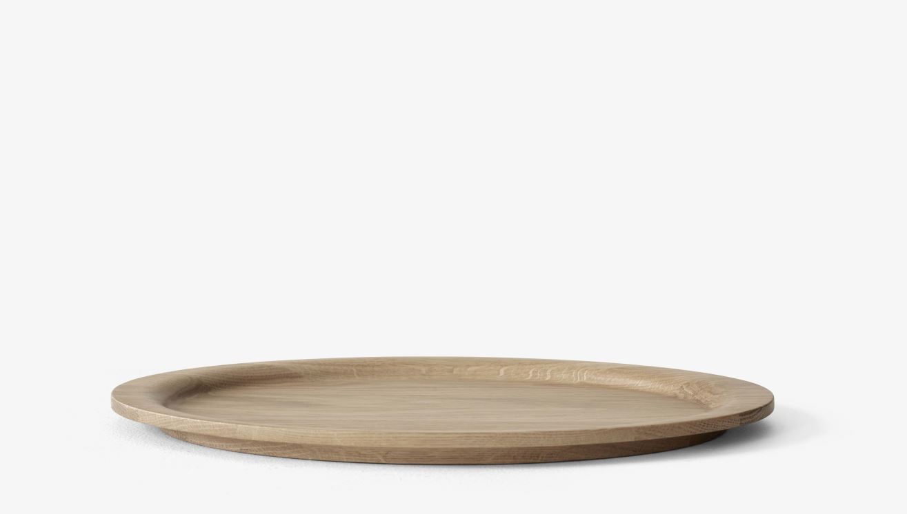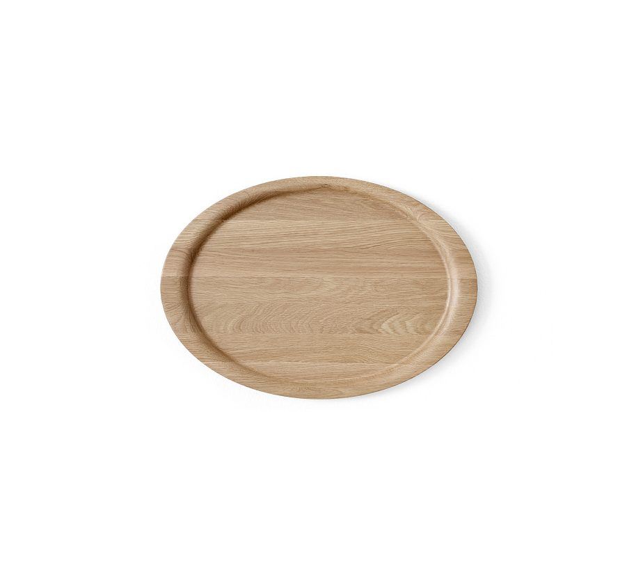 Flot træbakke fra &Tradition. Bakken er en del af Collect serien, kendetegnet af boligtilbehør med rene, enkelte linjer og et tidløst design, designet af designer-duoen Space Copenhagen. Bakken har en flydende form, med naturlige årer som løber igenem træet. Bakken er slebet af massivt egetræ, derefter er den håndpoleret og til sidst lakeret, for at beskytte overfladen bedst mulig. Bakken har en bredde på 40 cm samt en dybde på 28 cm, hvilket gør den oplagt til brug som en serveringsbakke.