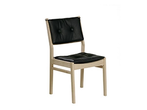 Saxo (Høffer) stolen er en gammel kending og i dag en klassiker der står i mange danske hjem. Saxo stolen er gedigent dansk håndværk i bedste massive træsorter udført af danske snedkere. Leveres i 5 træsorter, med sædepude eller sæde+rygpude. Puden leveres som standard i sort skind.