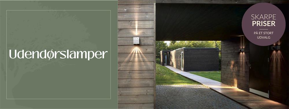 Du finder lamper i mange forskellige materialer i mange designs, så der er sikkert også en lampe, der passer til din stil og dit hjem. I sortimentet finder du fritstående lamper, væglamper og mange andre typer af udendørslamper. Gå på opdagelse i sortimentet, og find din favorit.
