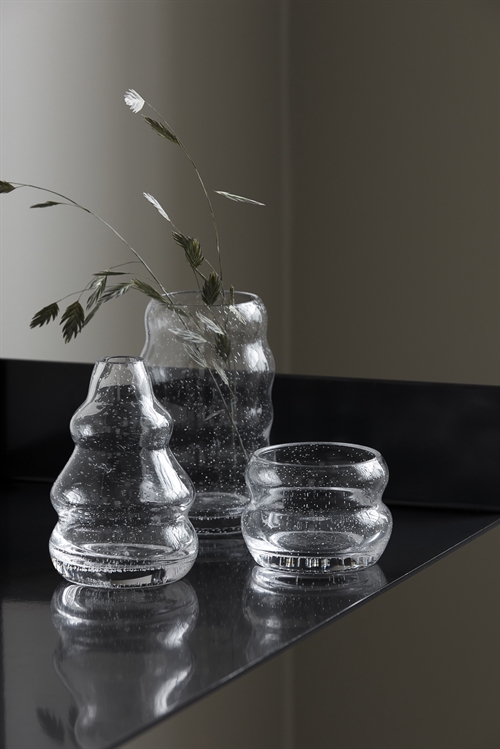 House Doctor Srina glas til fyrfadslys H: 6 cm - Klar Smuk og elegant vase fra House Doctor. Srina glas har et flot bølget design med små luftbobler i glasset Se mere ...