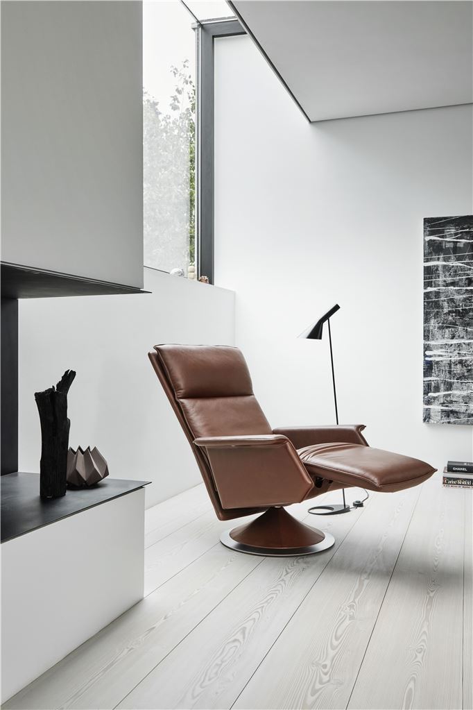 BERG Furniture Ceto Lænestol m. Fjernbetjening SH: 49 cm - Mat Krom/Nordic Brun Læder