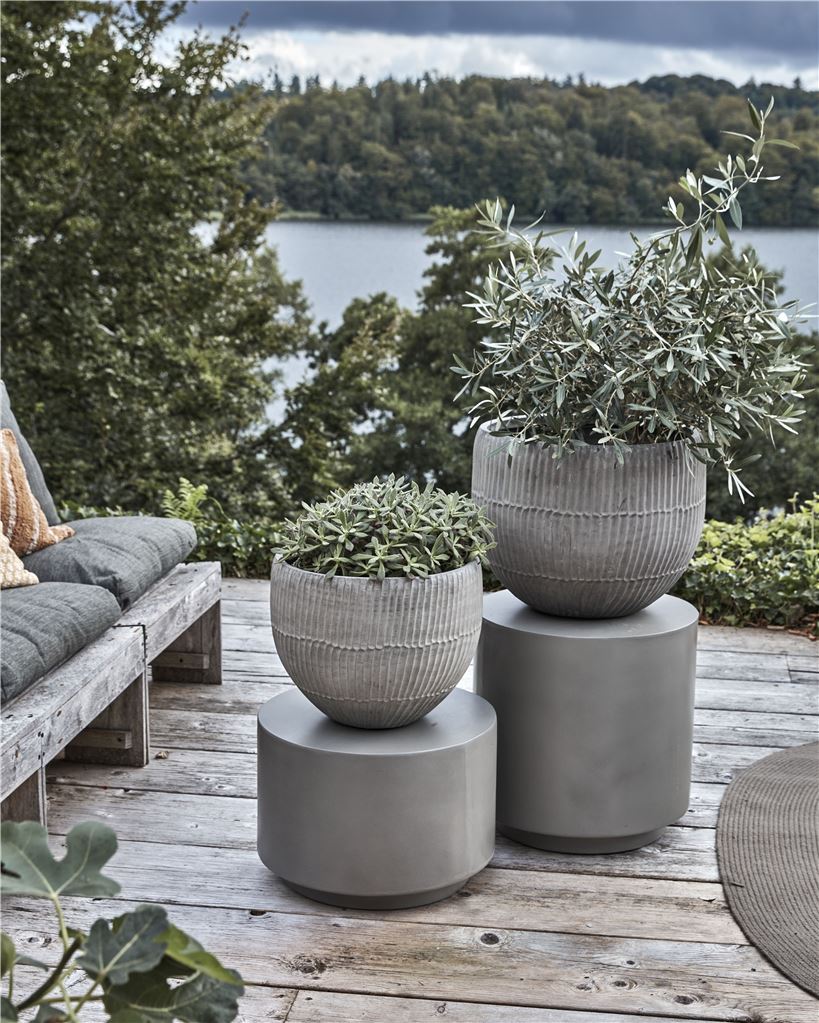 Dette sæt med to rillede potteskjulere fra House Doctor tilføjer en ekstra detalje til indretningen og fremhæver dine planter. Lavet af cement, giver de et tidløst udseende til dit udendørsområde, mens den neutrale grå farve skaber et roligt udtryk. Potteskjulerne er ideelle til store planter eller små træer og kan placeres ved hoveddøren, på terrassen, eller bruges til at opdele større udendørsområder i hyggelige kroge. Vær opmærksom på, at potteskjulerne har drænhuller. Når vand fryser, udvider det sig og kan få potteskjulerne til at springe om vinteren. Derfor er det vigtigt at sikre, at vandet drænes korrekt, og at potteskjulerne beskyttes mod regn og sne.