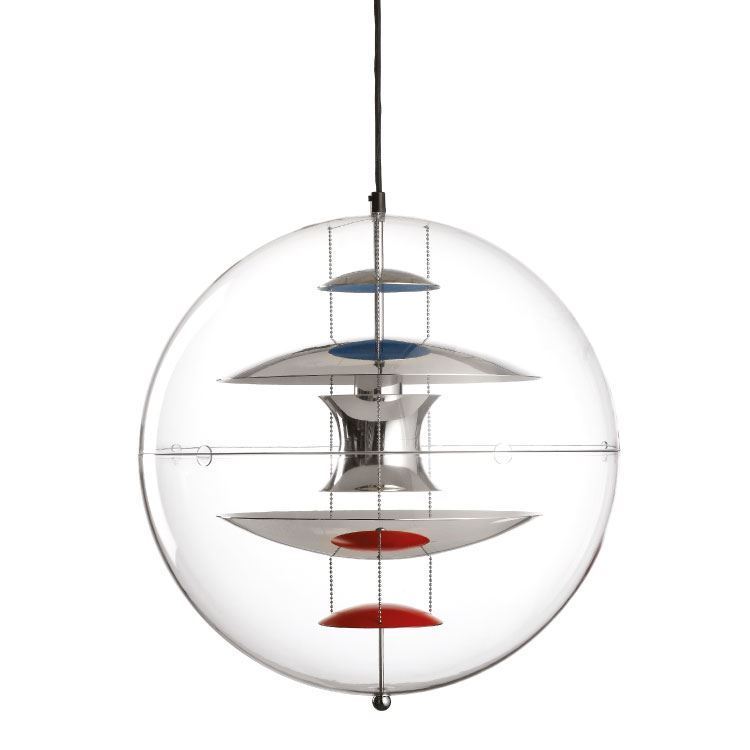 Globen er en ægte designklassiker. Designet af Verner Panton tilbage i 1969, og alligevel er den stadig populær dagen i dag. Den transparente runde akryl skal som nænsomt beskytter de 5 reflektere, vil passe ind i mange hjem. Her får du et design som virkelig har holdt siden sin oprindelse. . For Verner Panton var målet med Globen at designe en lampe som kunne fange opmærksomheden samtidigt med, at den forener rummet. Pendlen kan hænge alene eller klynger, den kan hænges over spisebordet, i hyggehjørnet eller i korridoren, uanset hvor den hænger, vil den tilføje varme til rummet. Lamperne er altid individuelt nummererede og certificerede.