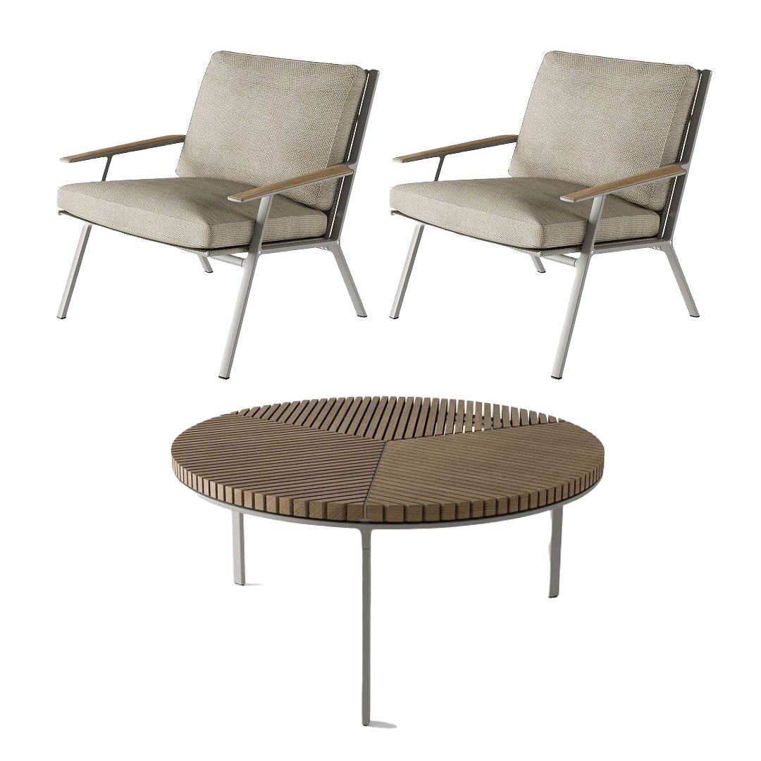 Vipp Outdoor 716 Open-Air Coffee Table + Open-Air Lounge 713 Chair - Teak/Beige
