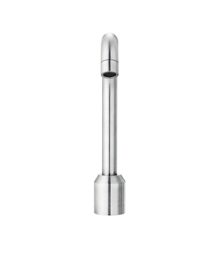 Smuk og elegant badearmatur fra danske Vipp. Badarmaturet er lavet i børstet rustfrit stål med en smart lille svingtud. Armaturet har en kalkresistent perlator og en keramisk kartusche, der giver en drypfri og jævn vandstråle.