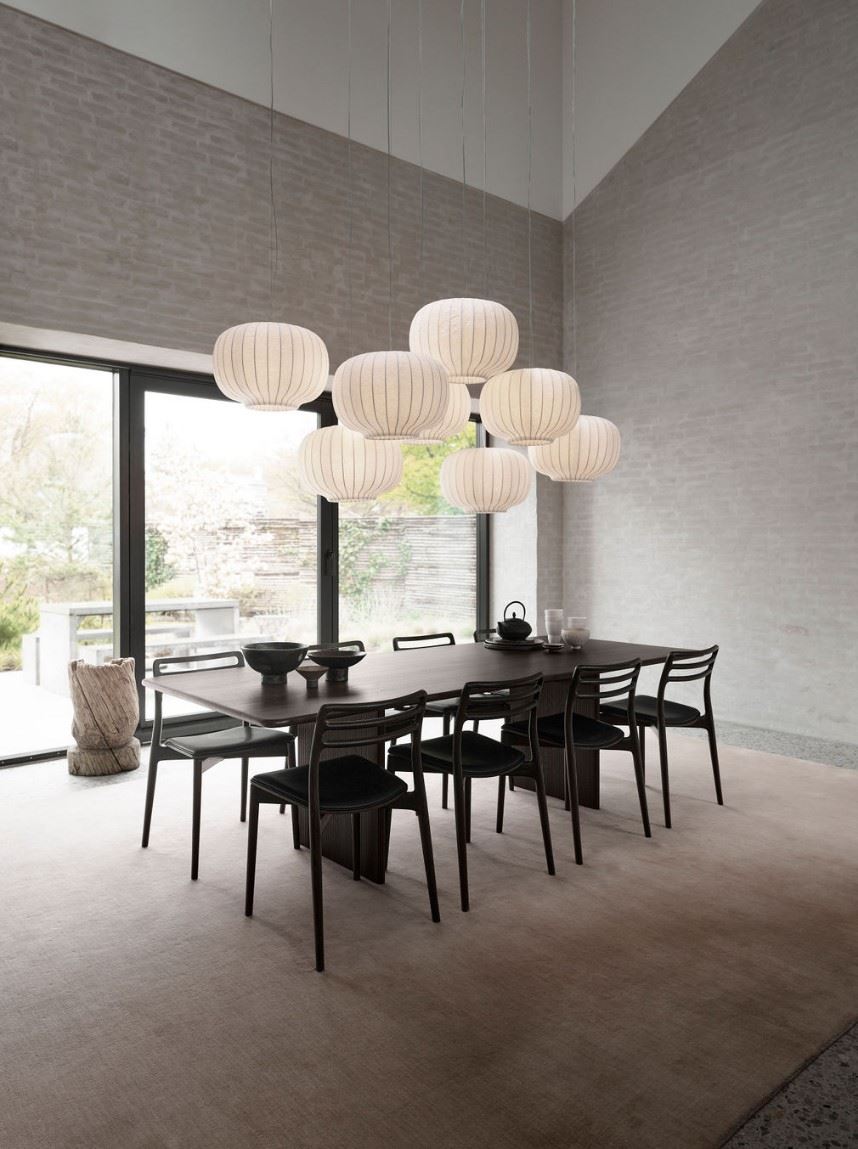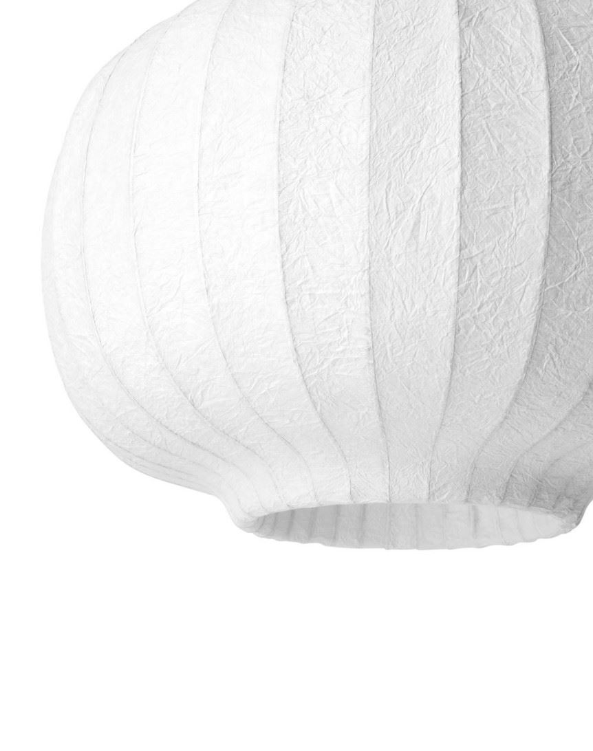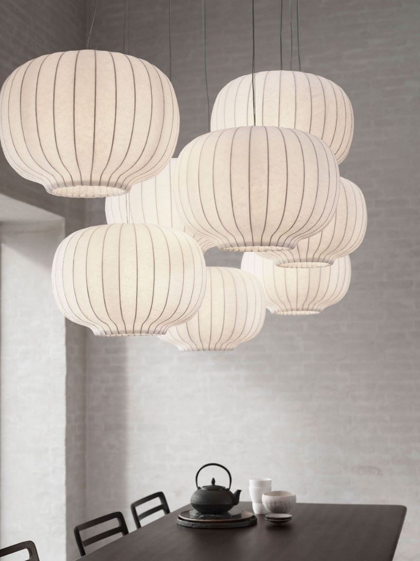 Super fin og enkel lampe fra Vipp. Denne lampe er inspireret af de asiatiske traditioner om papirlygter og japanske papirhåndværksteknikker. Lampen giver en hyggelig og dæmpet belysning, som man også vil genkende fra den skandinaviske indretning. Loftslampen bliver båret af en "gennemsigtig" ledning og en diskret wire, som vil give et flydende udtryk henover spisebordet.