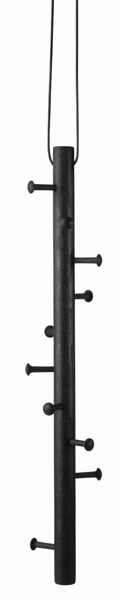 Elegant knagerække fra We Do Wood. Med den unikke CopenHanger knagerække kan du opbevare dit overtøj på fineste vis. Den smukke knagerække i massiv eg monteres i loftet med den medfølgende 2 meter lange lædersnor. Når jakker, tørklæder og andre beklædningsgenstande hænges på CopenHanger, skabes der en perfekt balance, som udgør et dekorativt element i din entré. Når knagerækken ikke er i brug, fremstår den som et lille skulpturelt kunstværk i sig selv. CopenHanger fås i farverne sort og natur.