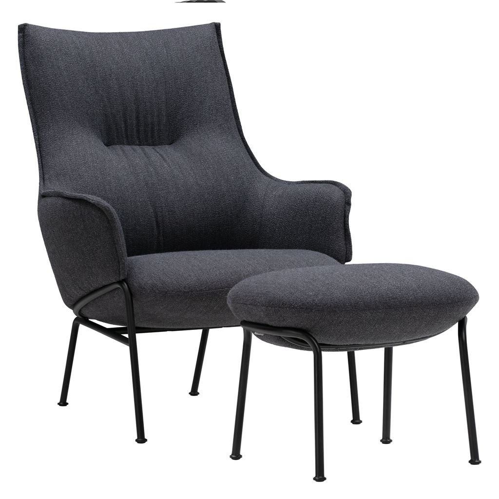 Wendelbo Aloe Loungestol inkl. Fodskammel - Sort Pulverlakeret Stål/Monta 08
