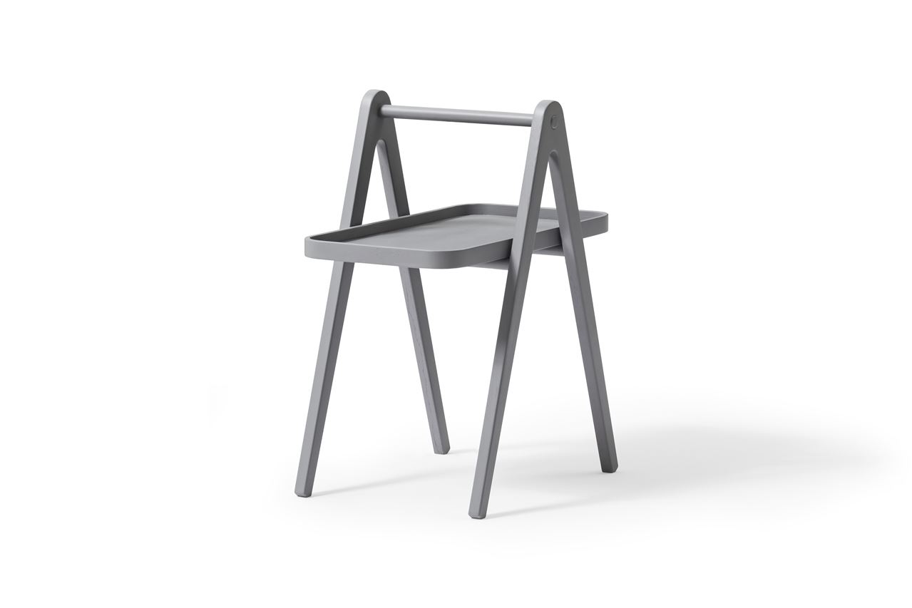 Fint bord fra Wendelbo. Dette lille bord har et næsten svævende udseende, hvor bakkepladen ser ud til at hvile på et midtpunkt, som en tjener, der balancerer et serveringsfad, og håndtaget gør det til din perfekte ledsager.