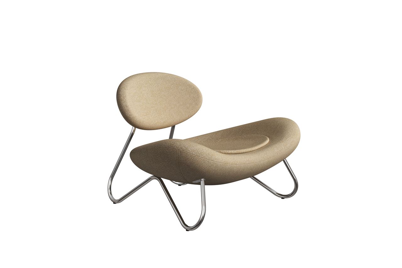 Woud Meadow Lounge Chair - Beige/ChromeDen smukke Meadow Loungestol fra Woud er designet af den danske skulpturdesigner og kunstner Finn Hvidberg Nielsen. Den