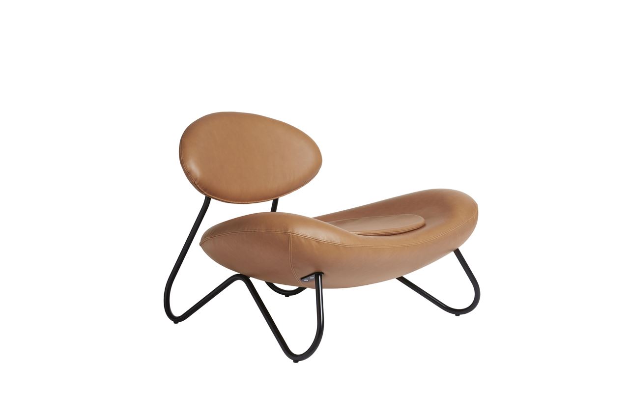 Woud Meadow Lounge Chair SH: 37 cm - Envy Leather Cognac/Black