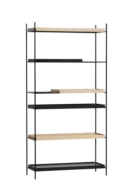 Woud Tray Shelf High H: 201 cm - Black Painted Oak & White Pigmented OakTray Shelf fra Woud er et dynamisk reolsystem, som du kan tilpasse, lige som du har lys